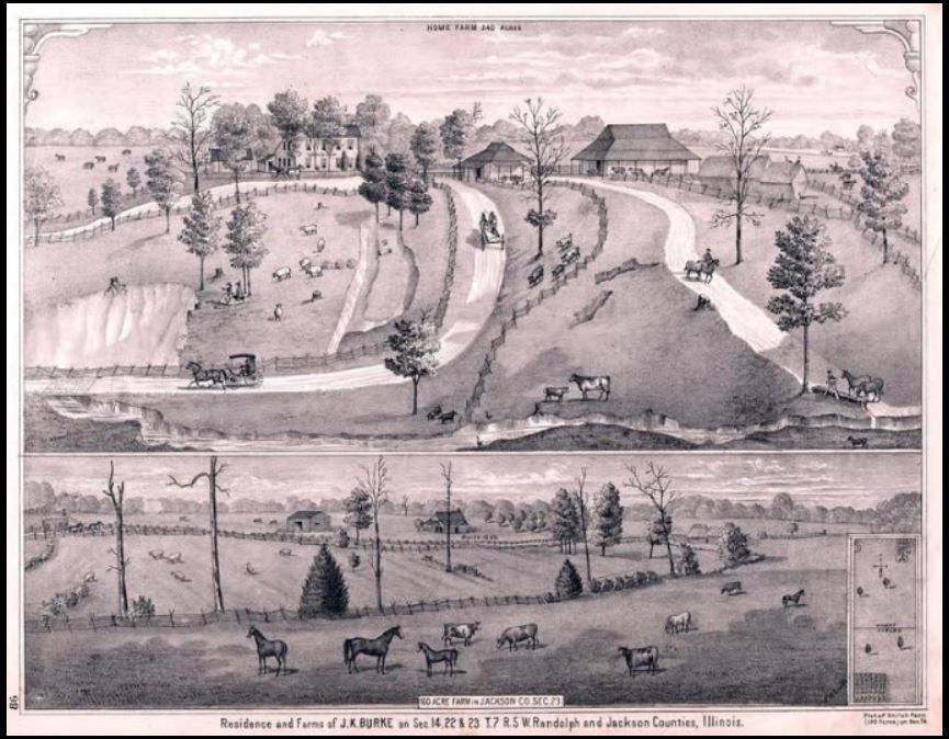 W.R. Brink & Co. An illustrated historical atlas map of the J K Burke Farm in Randolph County, Ills.: carefully compiled from personal examinations and surveys. [Edwardsville, Ill.?: W.R. Brink & Co, 1875] Map. Click image above to visit Library of Congress link to book.